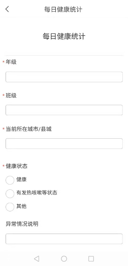 方法二:在“学习通”APPkaiyun.com,点击顶部“kaiyun.com”可切换到“kaiyun·开云(中国)官方网站”kaiyun.com。点击“每日健康统计”,填写完成提交即可。