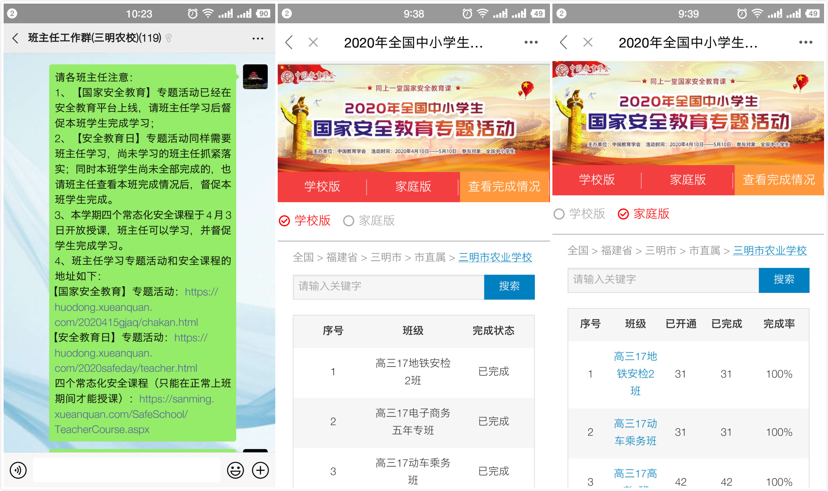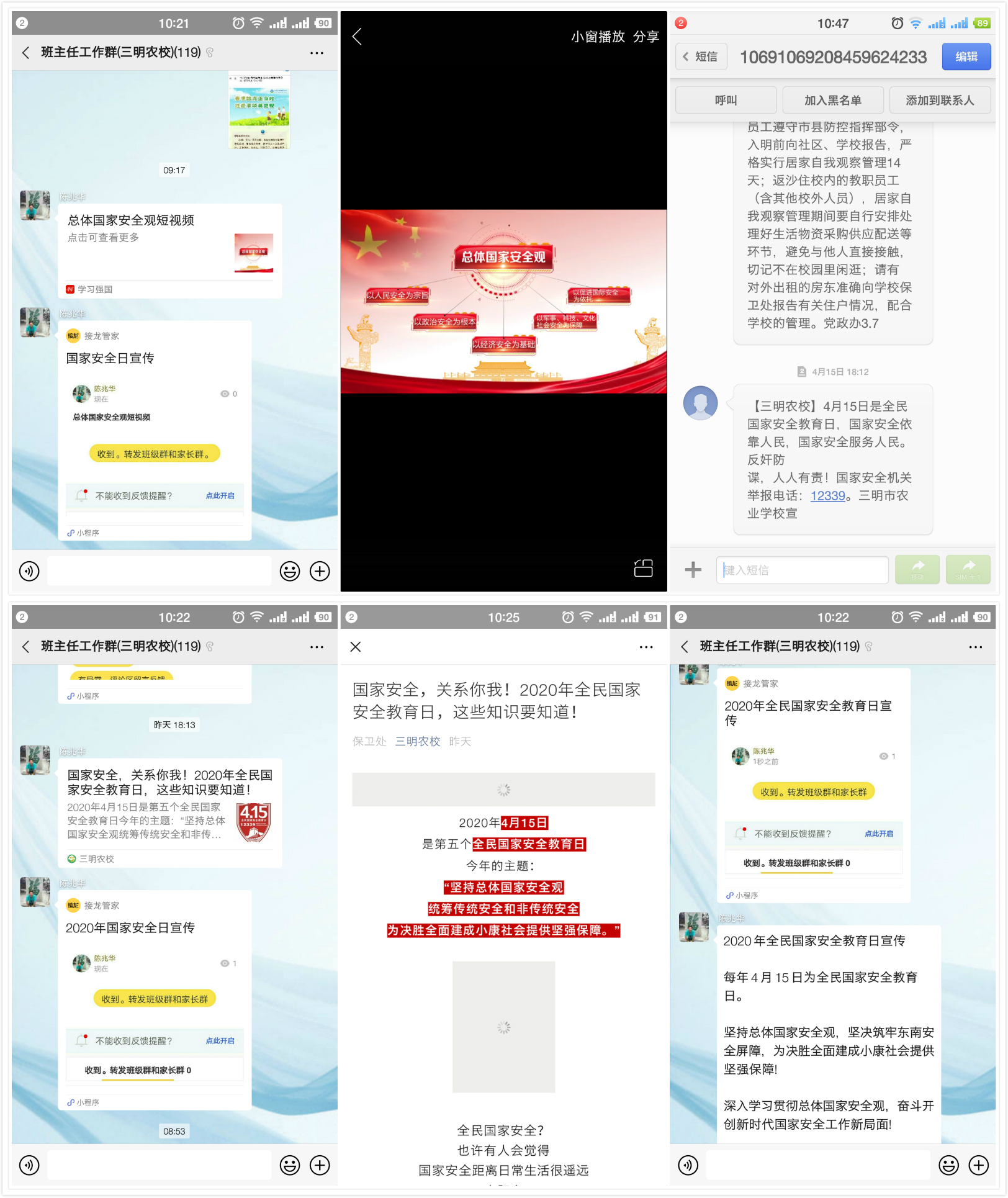 结合疫情防控与停课不停学的特殊情况,三明农校通过学校官方微博、微信、校园网等新媒体平台,积极转发主流媒体相关宣传内容;依托安全教育平台等网络平台开展线上教育,通过班级微信群、QQ群组织学生观看国家安全宣传视频,开展以“国家安全教育”为主题上“云”班会。