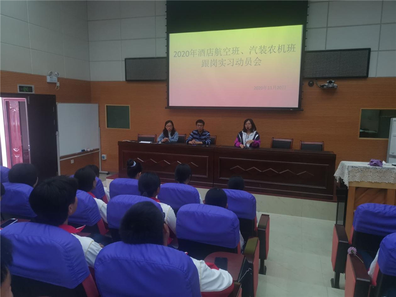 为贯彻落实全国职业教育工作会议精神,规范职业学校学生实习工作,我校深入学习贯彻习近平总书记关于教育的重要论述,加强以习近平新时代中国特色社会主义思想为核心内容的人才建设工作。近日,我校在校直录播室举办2018级酒店航空班、汽装农机班学生跟岗实习动员会。