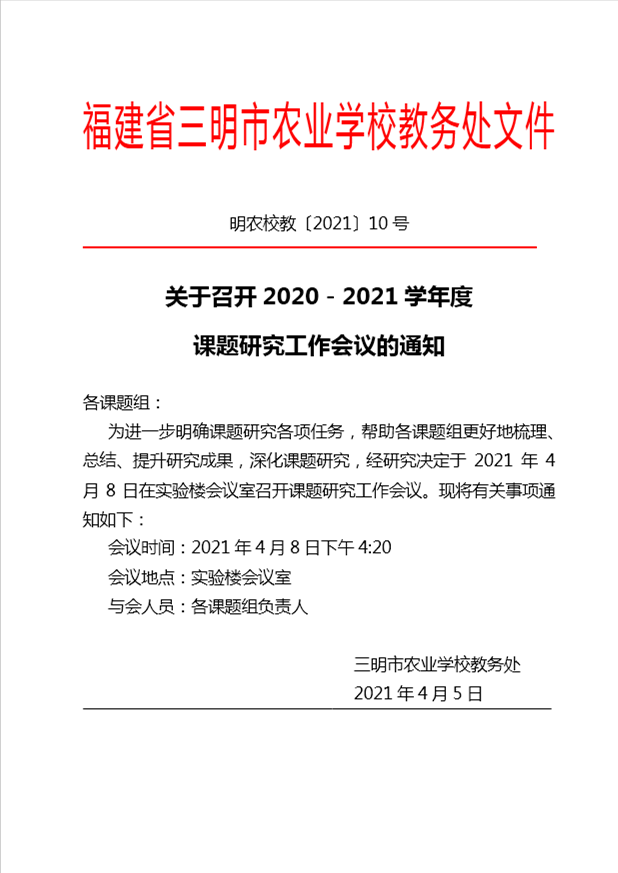 关于召开2020-2021学年度 课题研究工作会议的通知