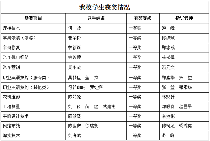 喜报:kaiyun·开云(中国)官方网站在三明市中等职业学校技能大赛第一阶段比赛中喜获佳绩!