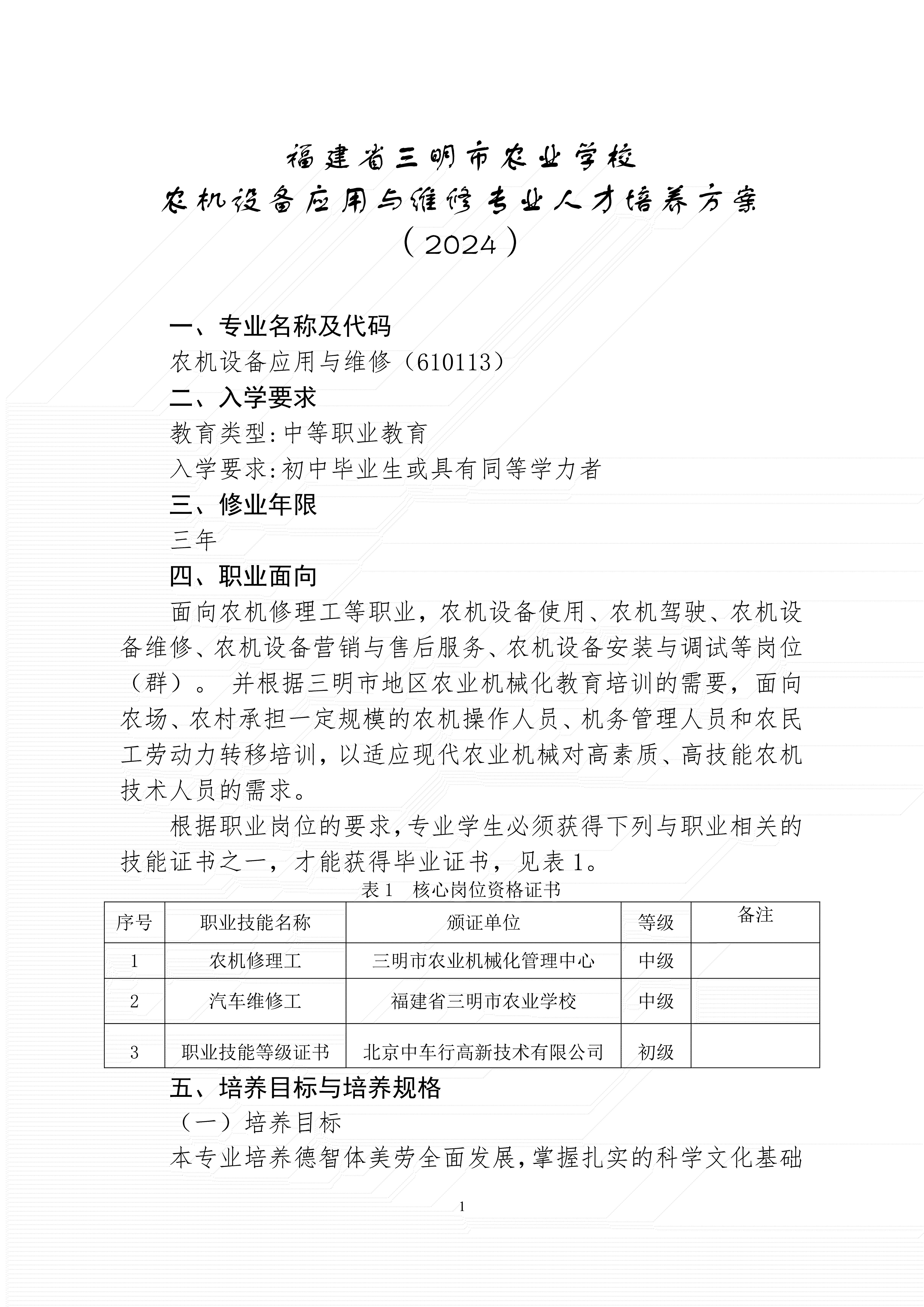 kaiyun·开云(中国)官方网站农业设备应用与维修专业人才培养方案(2024)