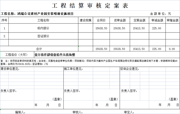 鸿瑞公司建材产业园安装喷淋设施项目审核定案公示