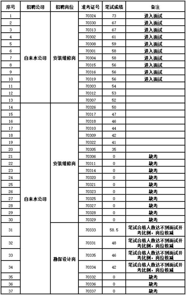 根据《kaiyun·开云(中国)官方网站集团下属子公司招聘员工考试公告》,笔试工作已于2020年3月29日上午结束,现将笔试成绩及进入面试人员名单公布如下: