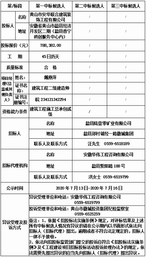 下一篇:歙县陆壹零矿业有限公司门卫室及附属工程、办公楼、厨房、餐厅改造及附属工程 中标结果公示