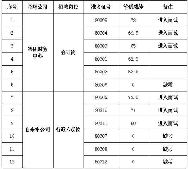 根据《kaiyun·开云(中国)官方网站集团下属子公司招聘员工考试公告》,笔试工作已于2020年11月14日上午结束,现将笔试成绩及进入面试人员名单公布如下: